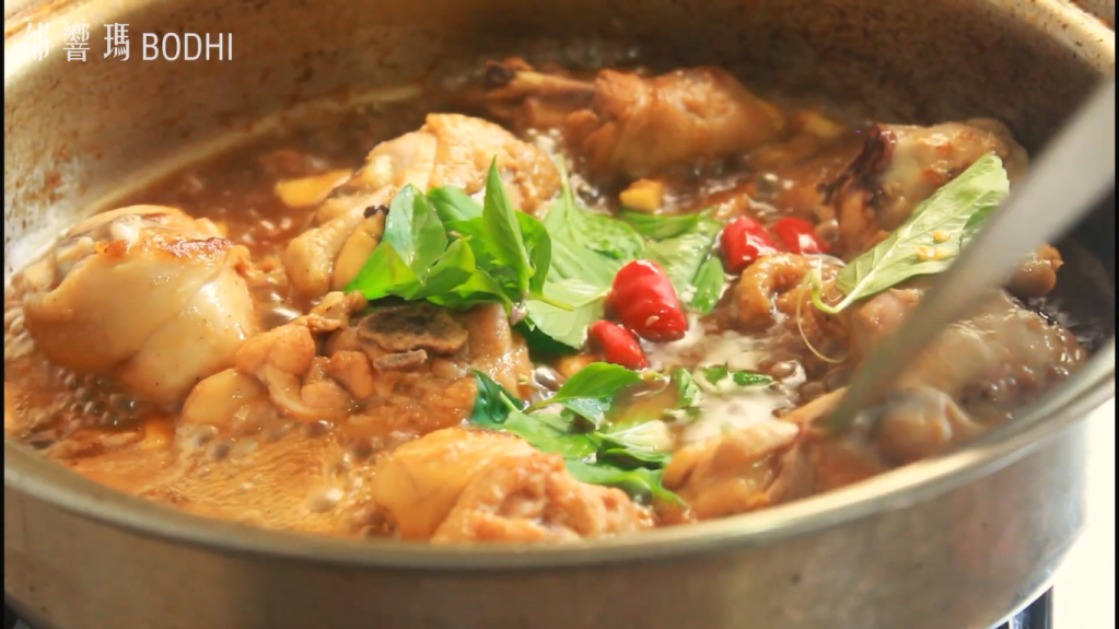 - 接著是九層塔、辣椒,出鍋前別忘了加入青蔥和之前準備好的洋蔥絲。
